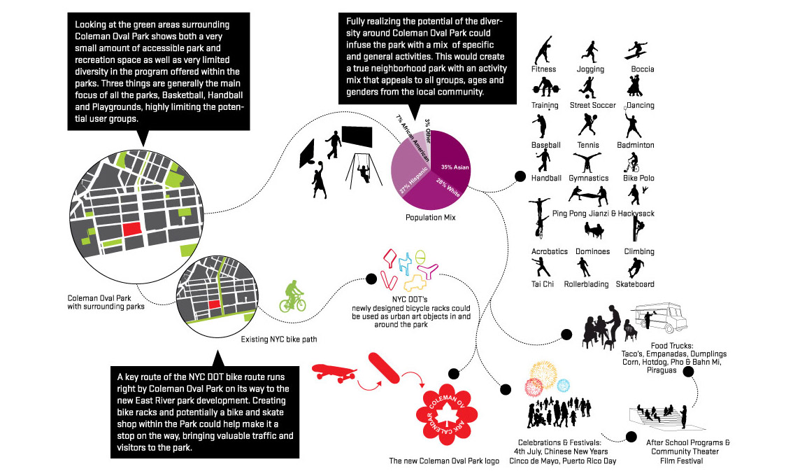 I USA har vi for nylig afsluttet og åbnet den første fase af Coleman Oval Park og Skate Park der ligger på Manhattan under Manhattan Bridge og vi har udarbejdet vores ide forslag til Domino Culture Factory, en ny vision for omlægning af den eksisterende Domino Sugar Factory i Williamsburg, Brooklyn.