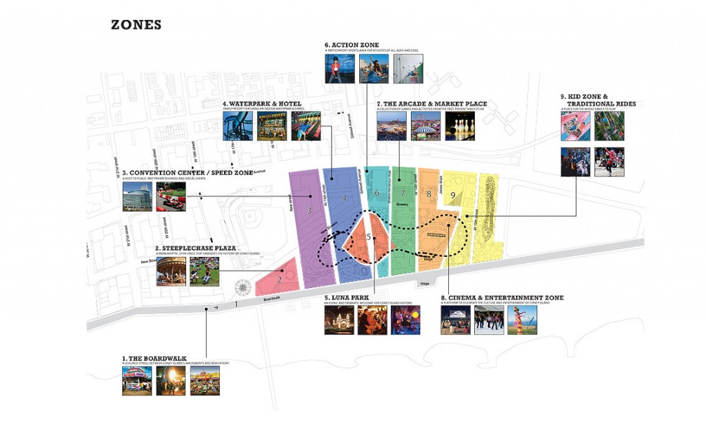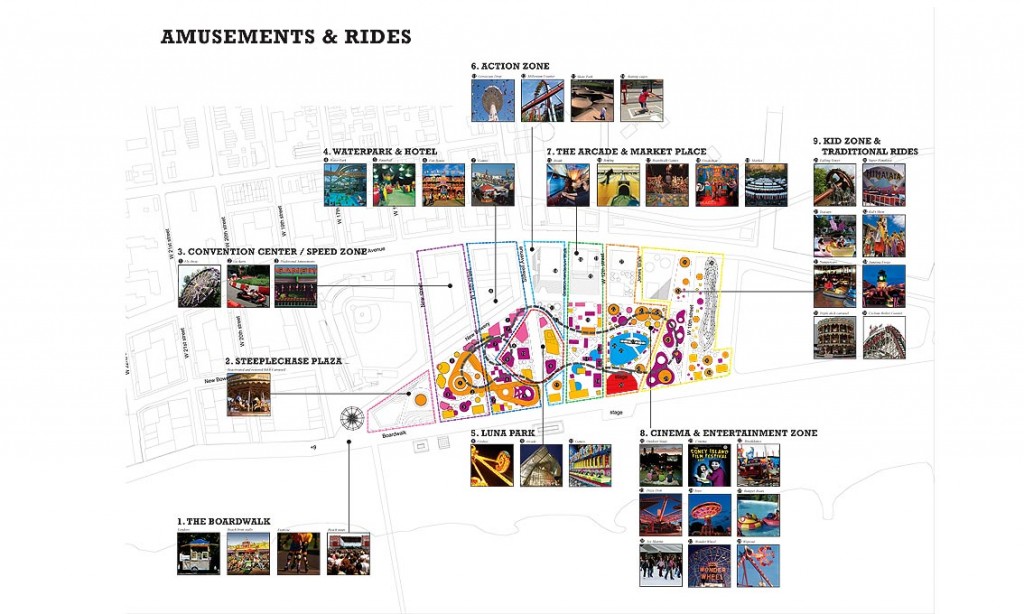 The new master plan seeks to re invigorate Coney Island as a whole by expanding the area of public park land and integrating a broad mix of new opportunities. The plan integrates a variety of programs to create a financially viable mix of entertainment, public park and private development while maintaining the existing urban fabric of Coney Island.