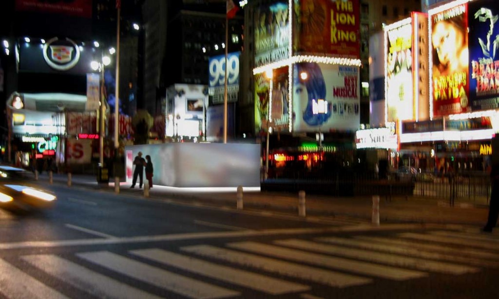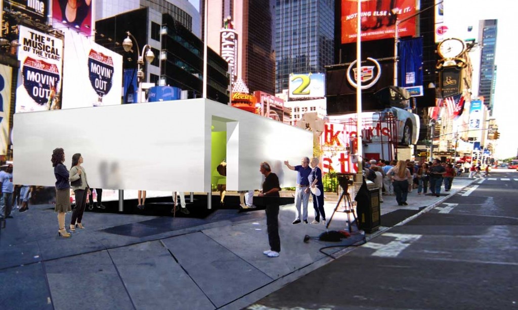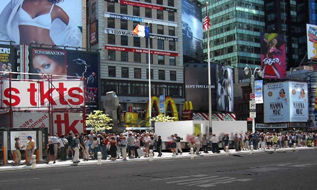 While small, the Creative Time Information Booth occupies the center of one of the most important and best known public spaces in the world, Times Square.
