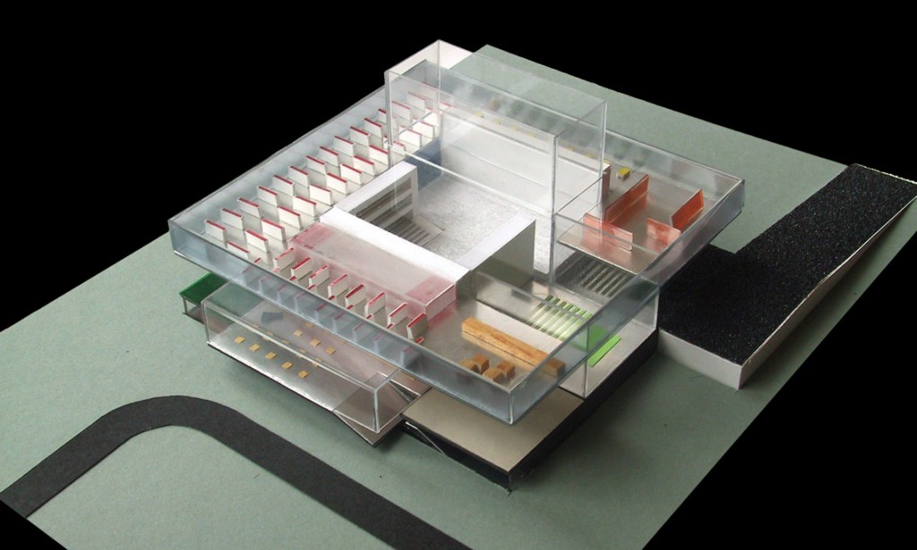 The Dallas theater is designed to optimise flexibility, allowing the actors and directors to utilize the building in an array of different spatial configurations. The main program, the theater itself occupies the raised ground floor, surrounded by flexible and adjustable seating walls.