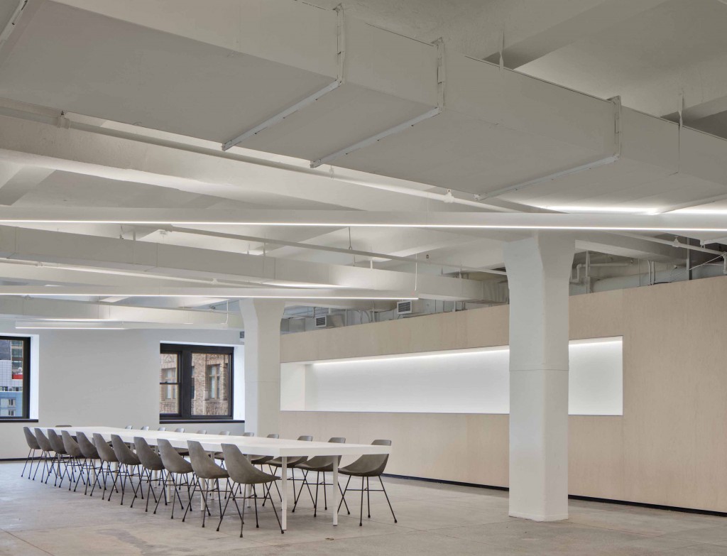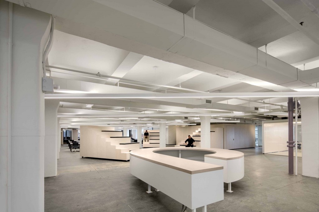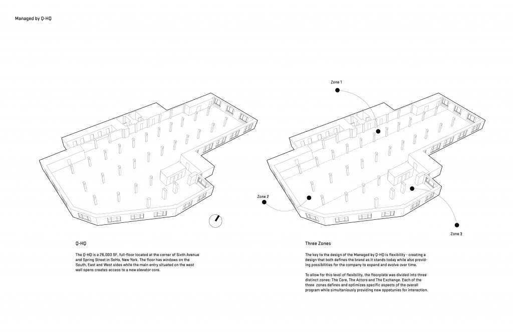 Designed around two main ideas, the flexible office space and the program specific wall, the new MBQ-HQ creates a balance that caters to core of the MBQ brand: an office that has the ability to evolve and change on a daily basis while still maintaining its core design identity.