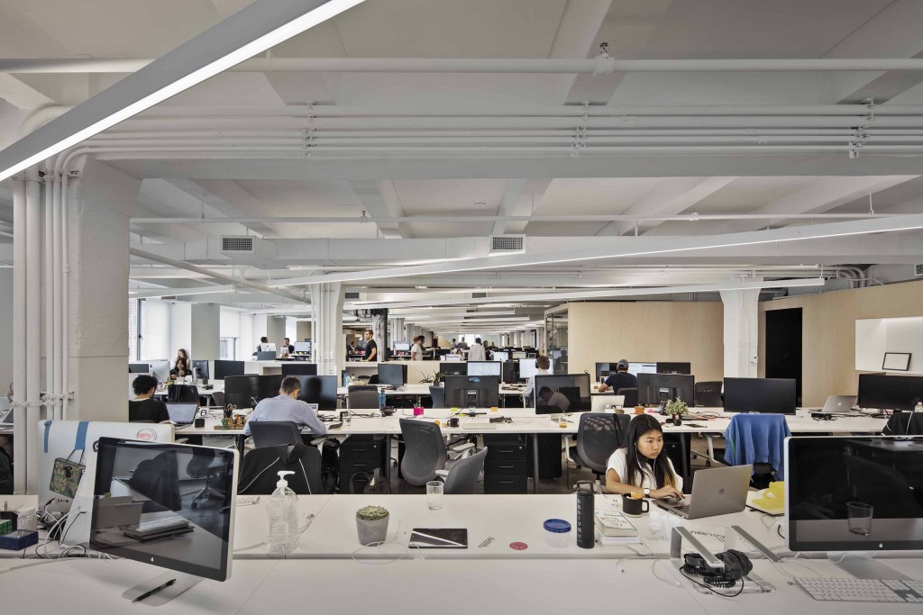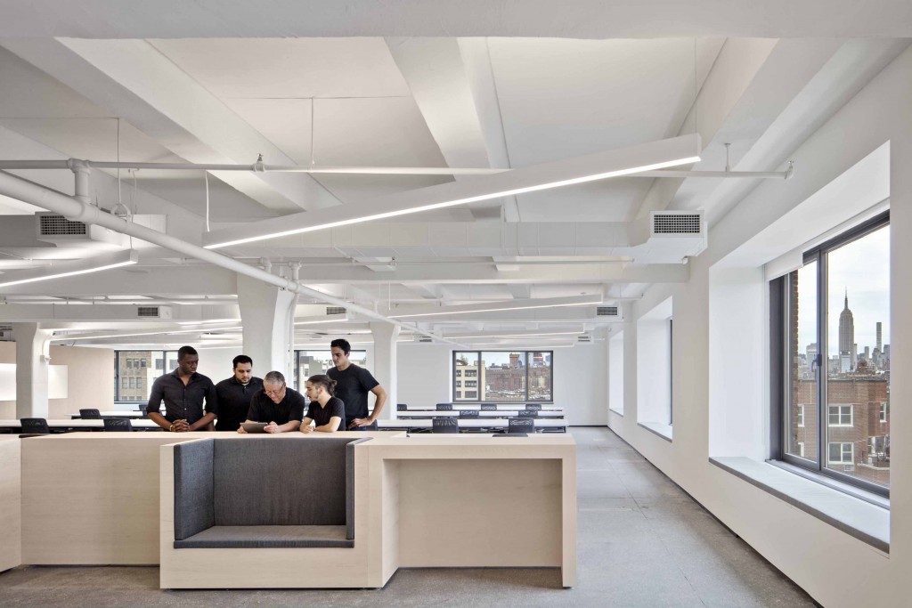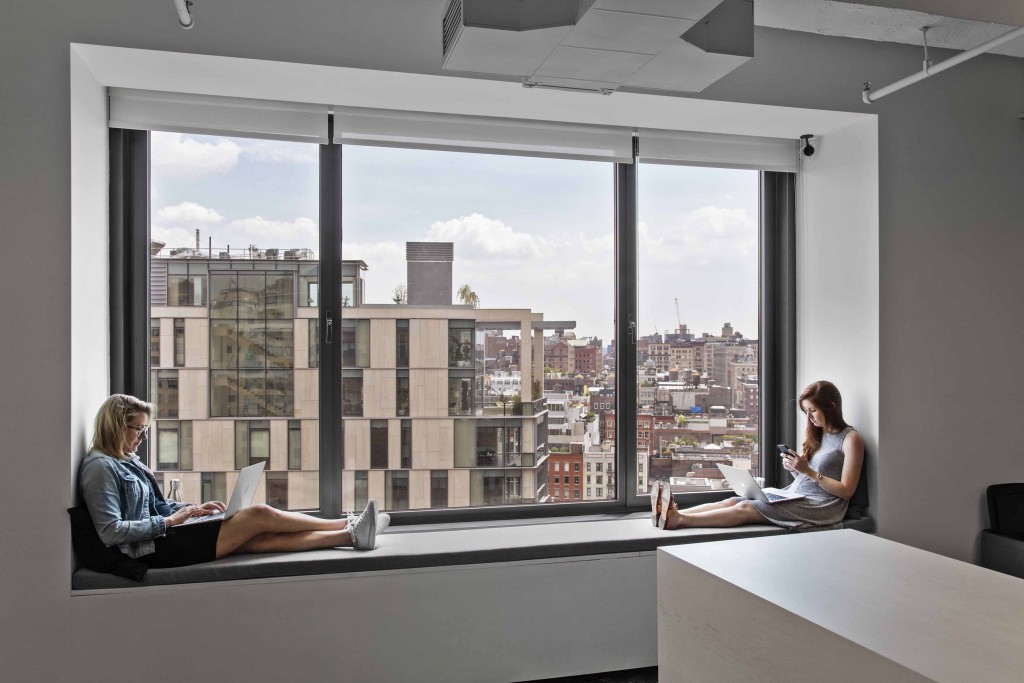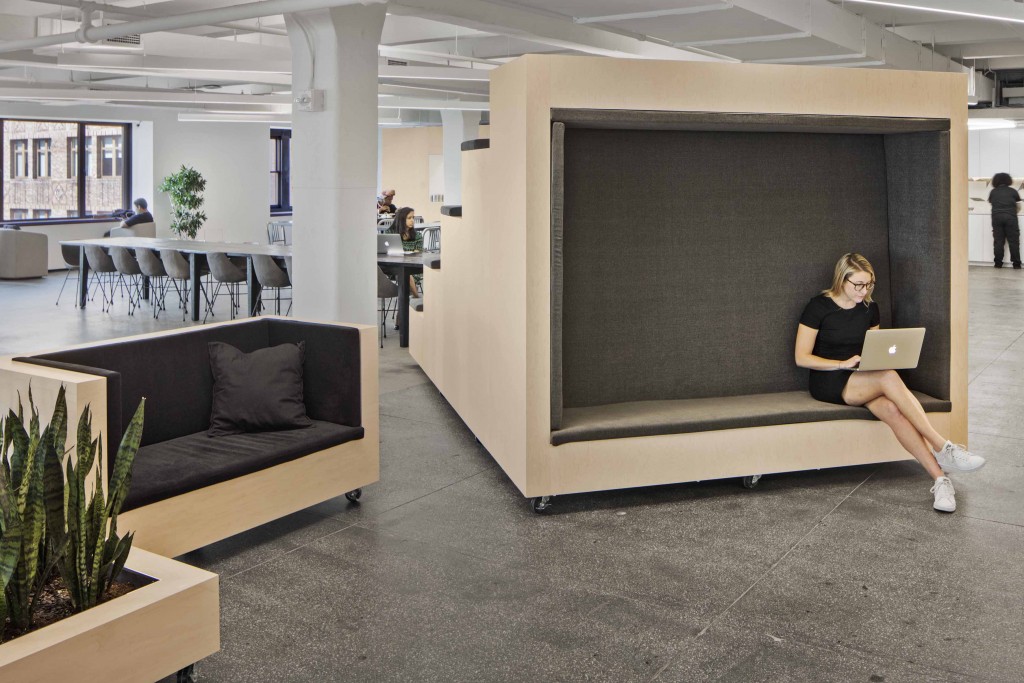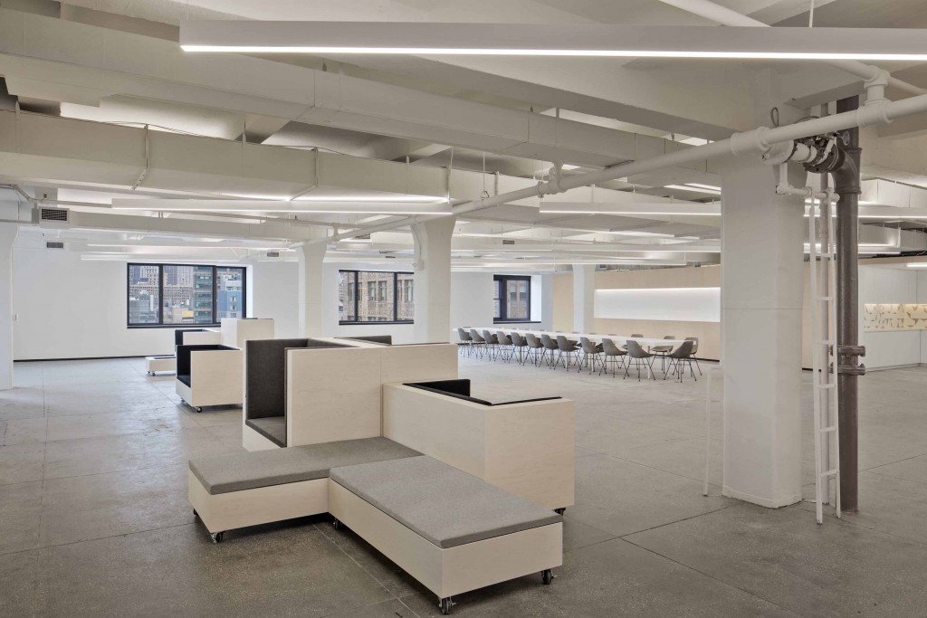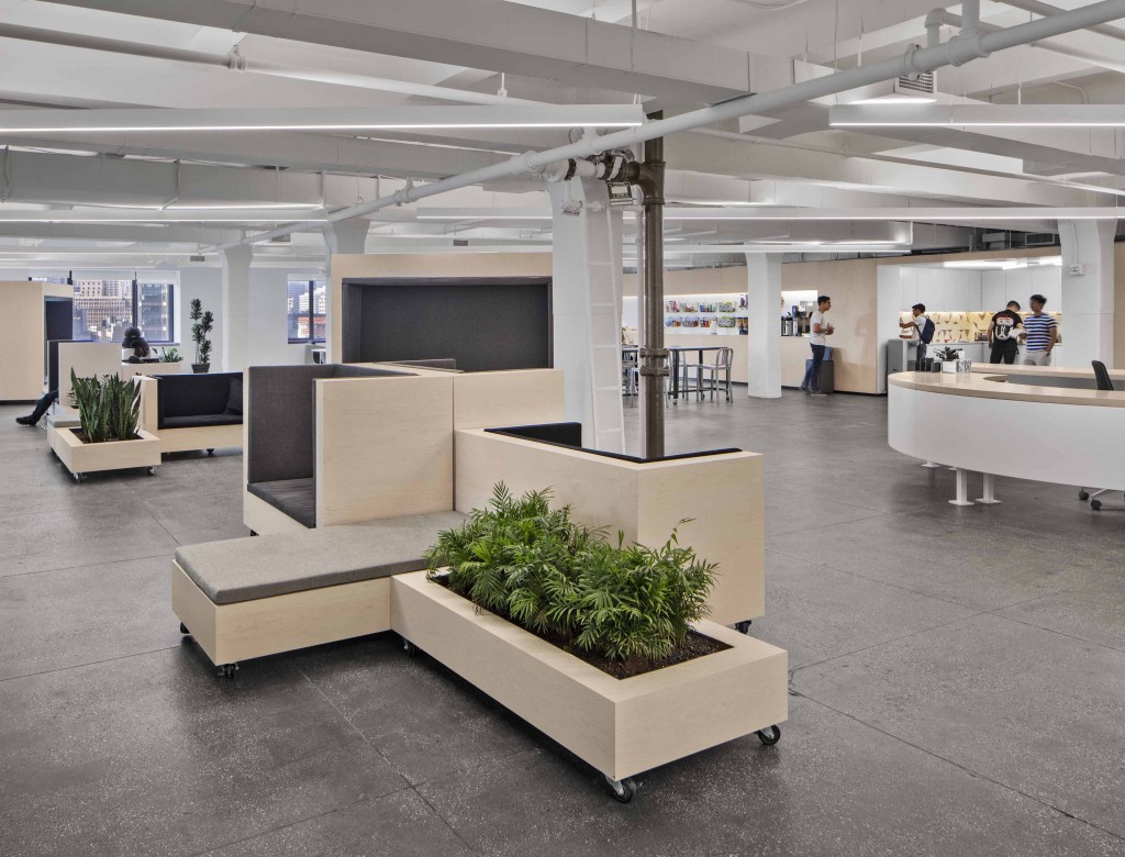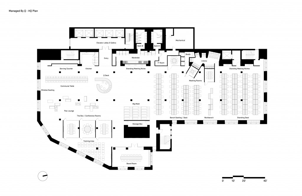 The new Managed By Q HQ office is located in SoHo, New York and is designed to reflect the Q brand directly, emphasizing simultaneously hard work and an inclusive and inviting office environment.
