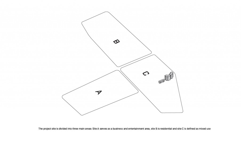 The site is divided into three main areas separated by existing roads. Site A is defined as a new cultural center with sites B & C comprising of mixed use residential program. To link the three areas together, we have introduced a sunken cultural path that leads visitors through the entire programmatic experience of the new master plan.