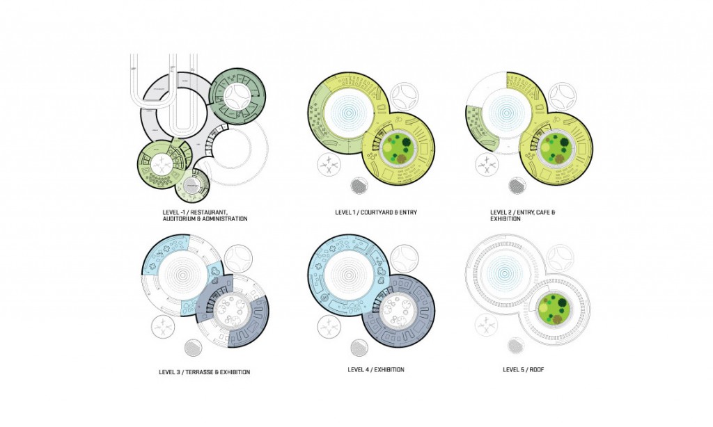 With the design of the Samaranch Memorial Museum two existing typologies merge: the memorial and the museum. The five interlocking rings of the Olympic Logo serves as the foundation for the building’s design: together the five rings create a continuous loop, taking the visitor through both the exhibition and memorial areas. This combination allows the building to both honour the life of Juan Antonio Samaranch while simultaneously creating a place that focuses on the true legacy of the Olympics: creating opportunities for people to meet and celebrate across cultural and geographical boundaries.